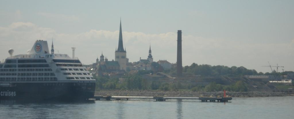 Next morning we were up fairly sharpish to catch the international ferry across the Baltic Sea to Tallinn. The ferry port is located fairly close to the Senate Square and Helsinki Cathedral – one of the main sights in Helsinki which we’d missed the previous day. The ferry was a large hydrofoil-esque craft that picked up a fair rate of knots as it sped across the sea. The approach into Tallinn was really picturesque and you could clearly see the old town city walls and the spire of St Olav’s church and tower dominating the skyline: