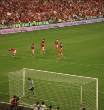 The match itself was a one-sided affair with Benfica enjoying plenty of possession and playing some attractive open attacking football. First half goals from Rodriguez on 22’, and then Rui Costa on 35’ (with a well taken finish from outside the box) gave the home team a comfortable half time lead. The second half followed suit and it was Nuno Gomes (the other player we’d heard of) who scored Benfica’s third on 52’.