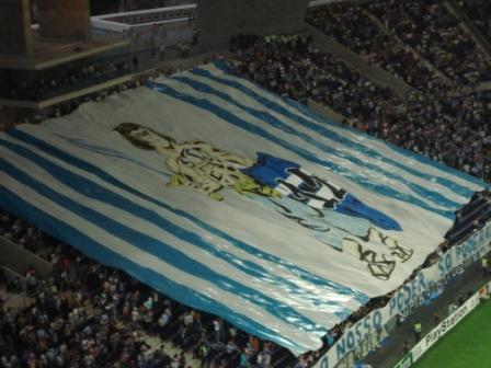 One of the Porto Ultras groups are known as the ‘Super Dragaoes’ and occupy the north end behind the goal. They are rumoured to be the largest ultras group in the country with a membership of approx 4,000; and as the teams emerged for the line ups and champions league anthem they unveiled a large banner with their ultras logo emblazoned across it.
