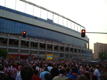 There was a real buzz along the ‘Calle Toledo’ that afternoon. The Calle Toledo is one of the main roads that leads down to the Vicente Calderon from the City Centre, and on a match day is a great place to stop off for a few beers. As mentioned on my post from Atletico last year there are quite a few bars, cafes and tapas bars dotted along here and fans spill out into the streets. The place was rammed with Atleti and Schalke supporters prior to kick off and you could sense there was a lot riding on this fixture – with qualification to the Champions League group stages at stake.