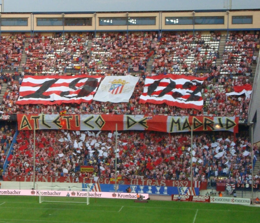 Inside the Vicente Calderon there was a raucous atmosphere, and the ‘Frente Ultras’ stood behind the south end had taken things up a notch compared to what we had witnessed a year earlier against Racing! The volume of noise was ten times louder and the pre match tifo was a decent effort as well: