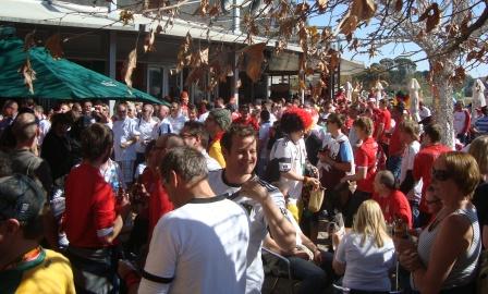 On match day the Loch Logan waterfront area was absolutely buzzing with both sets of supporters. There was a great atmosphere shared between England and German fans that day, with beers and banter flowing in the warm winter sunshine. Even the inevitable appearance of a squadron of inflatable spitfires was taken in good spirits by the Germans!