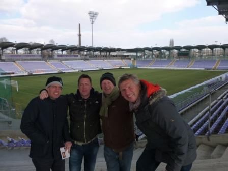 Lister, Jeff, Nathan and Mark at the deserted Szusza Ferenc Stadium.
