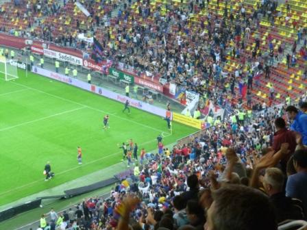 The fifteen minute walk from the metro station to the National Arena quickly illustrated that Steaua’s peasants had their pitchforks out. I very accidentally made the trip with a group of several hundred of the people you see on Panorama documentaries. The group’s members were young, male, tattooed and shirtless, but most alarmingly of all carrying menacingly long flagpoles without the flags. I was keeping my head so far down it was scraping along the pavement.