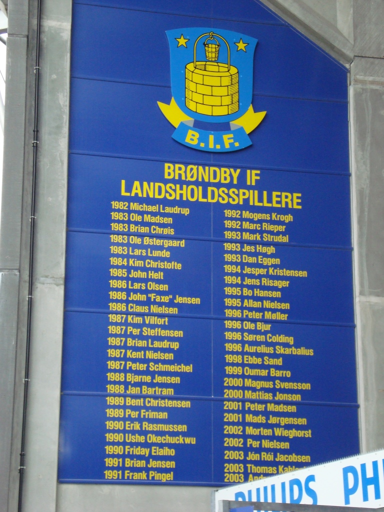 On the corner of the Sydsiden and Loxam Tribunes there is a large ‘player of the year’ plaque depicting names of Brøndby greats of yesteryear, a quick scan through the list and many famous Danes have worn the blue and yellow including: Michael Laudrup, John Jensen, Lars Olsen, Kim Vilfort, Brian Laudrup, Peter Schmeichel, Ebbe Sand to name drop a few.