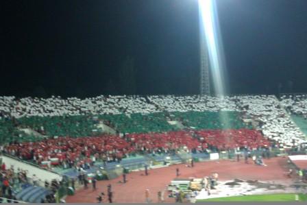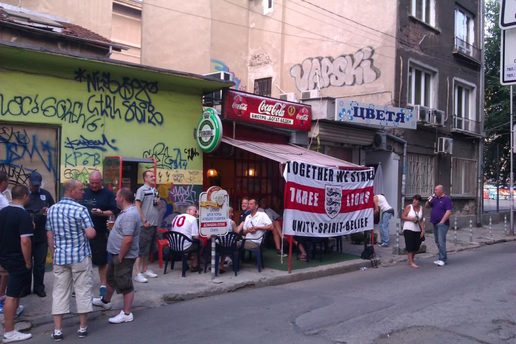 Officially there were 3,000 England fans in Sofia for the game, but the many more that had travelled without tickets were able to purchase them easily on the day of the game. There are several ticket booths on the periphery of the stadium that were selling tickets to England fans for the Bulgarian sections. Despite the Bulgarian public beginning to lose faith in their team, the draw of England at home meant the fans were still out in force for this match.