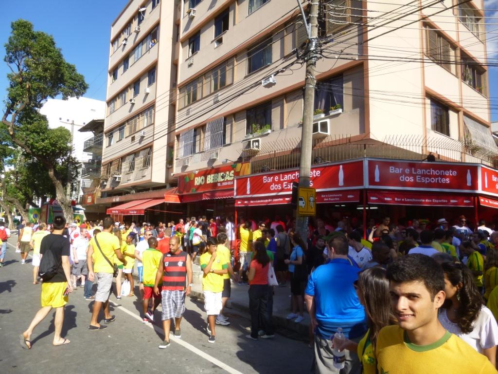 The thousand or so England fans had made a proximal (and beer selling, naturally) snack bar theirs for the early afternoon, inwardly exchanging battle scars as the Brasilieros enveloped around them.