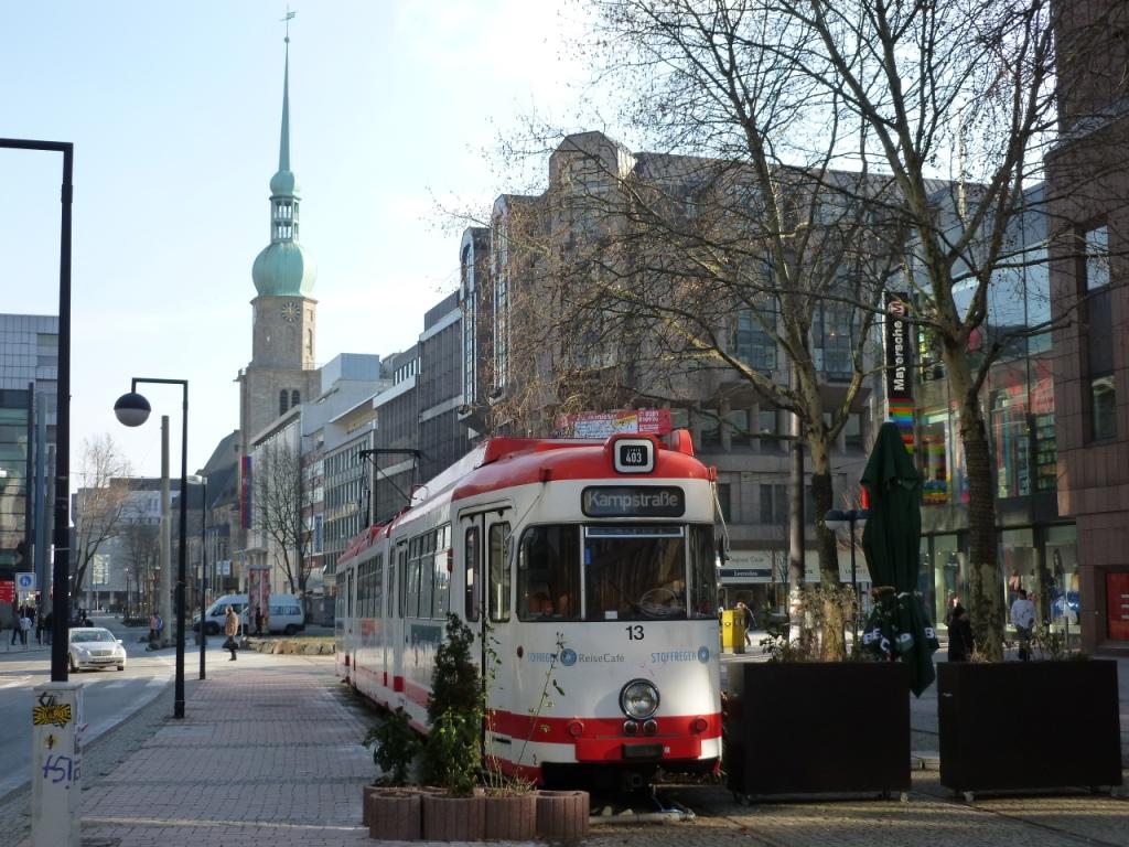 The end of the line…Kampstrasse in Dortmund city centre, the Cathedral in the background marking the spot for the Alter Markt!