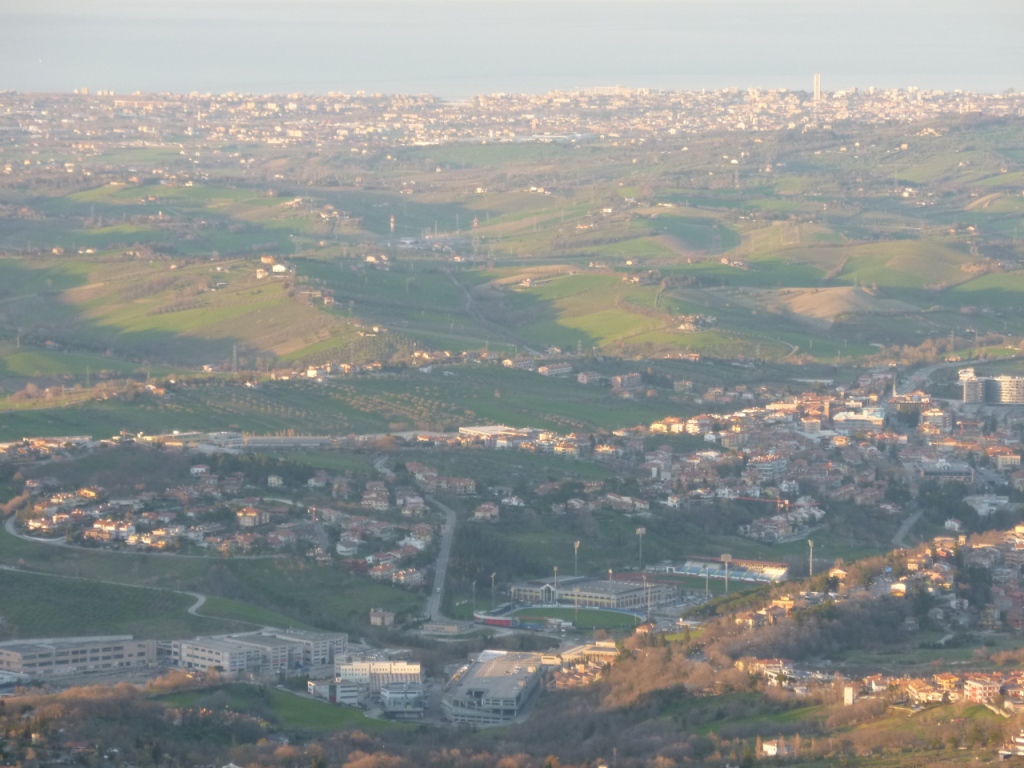 Castle view to the east – Serravalle in the foreground and Rimini in the distance….