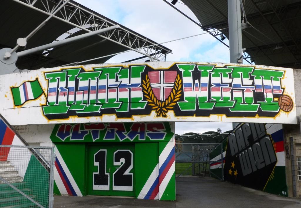 The entrance to ‘Block West’ marked by Ultras Rapid graffiti….