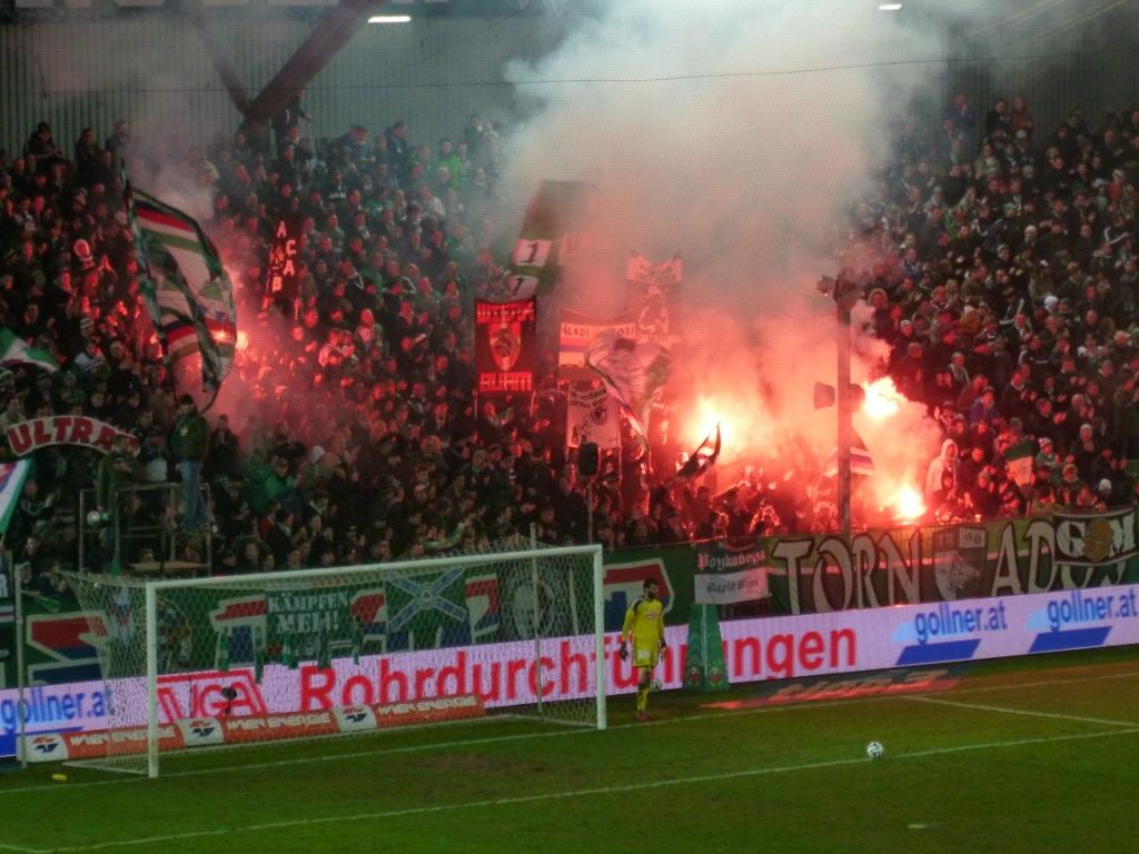 To be honest the reputation of the clubs supporters more than the football itself was the main reason I had come out to visit this derby. Don’t get me wrong I love the ‘beautiful game’ and will watch almost any level of football given half the chance, but throw in a match played to a backdrop of passionate supporters who are renowned for creating an electric atmosphere, and I’m absolutely all over it! And it that regard Rapid Vienna certainly doesn’t disappoint.
