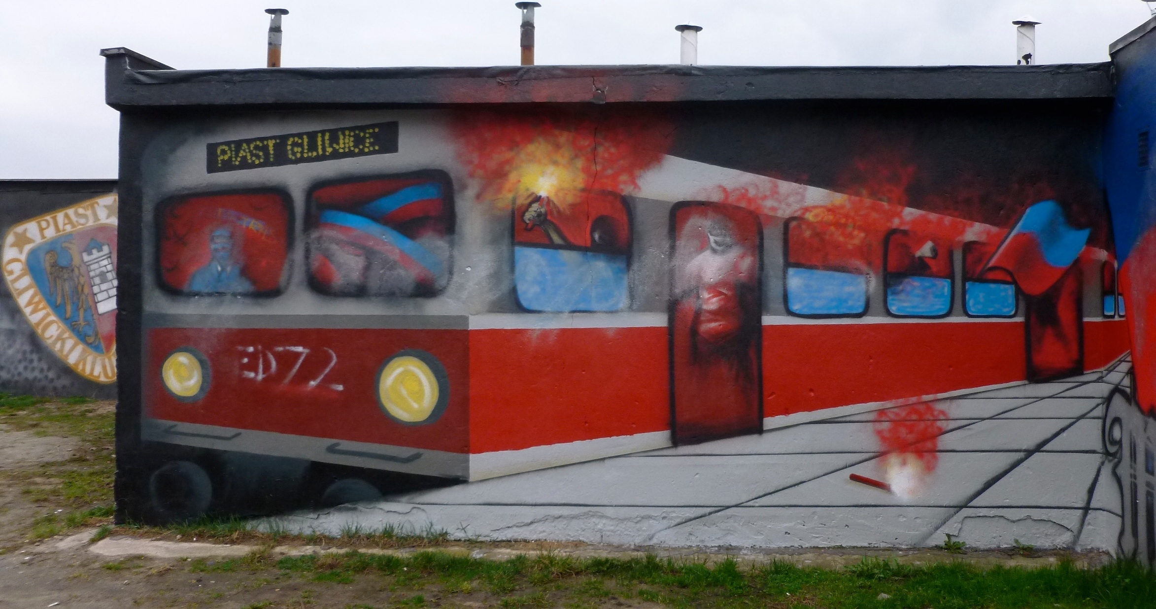 Exit the station by using the underpass (at platform 1 end). As you walk up the slope and out to street level bare left onto ‘Tarnogorska Street’, and then take the next right onto ‘Opolska’. After 100 yards or so take the next left onto ‘Stanislawa Witkiewicza’. Walk up the incline and then take a right when you come to a small parade of shops on the edge of a housing estate. A small road snakes through the estate blocks and a series of garages covered in Piast Ultra’s graffiti will mark your approach to the stadium, and the sanctity of the floodlights in the distance will lead you the rest of the way!
