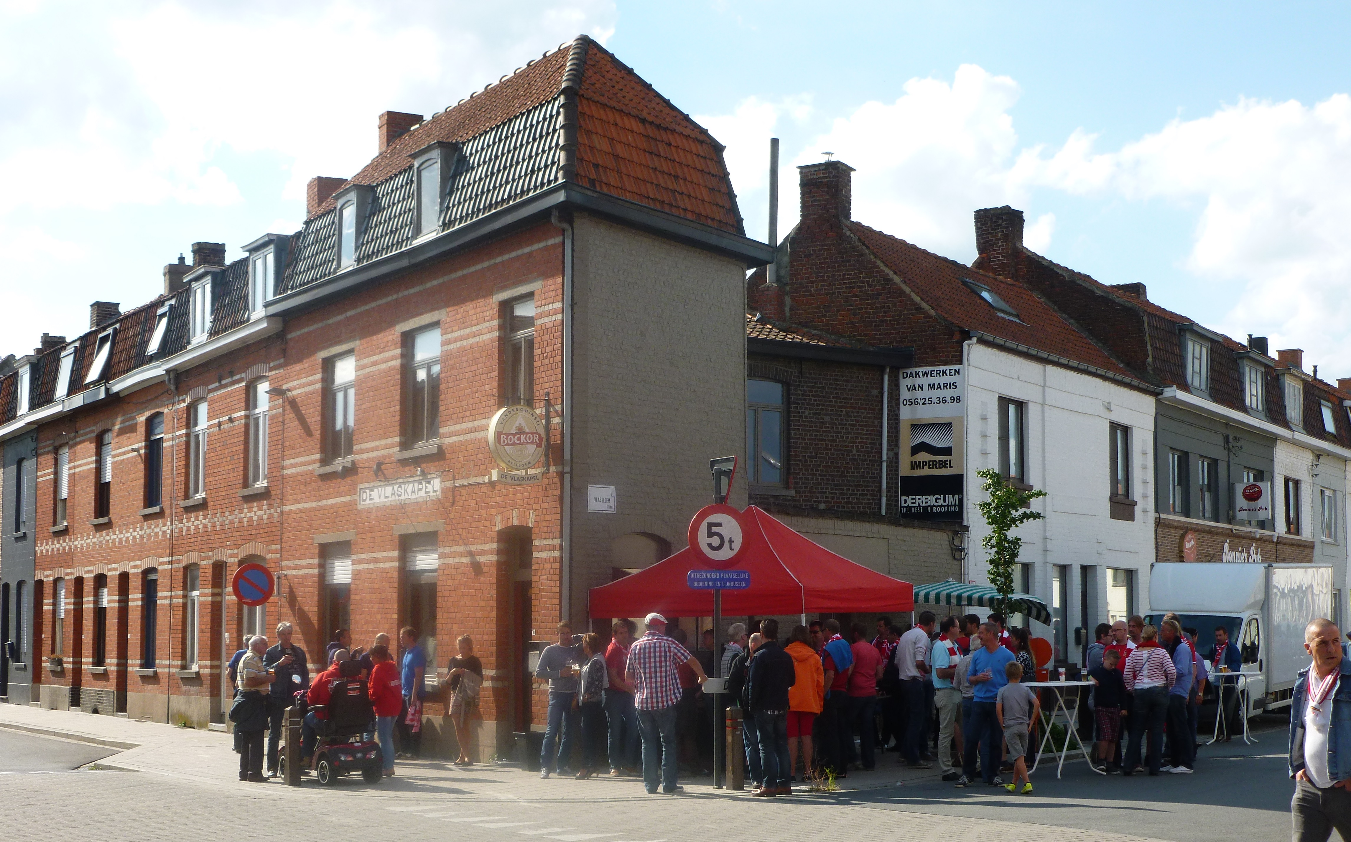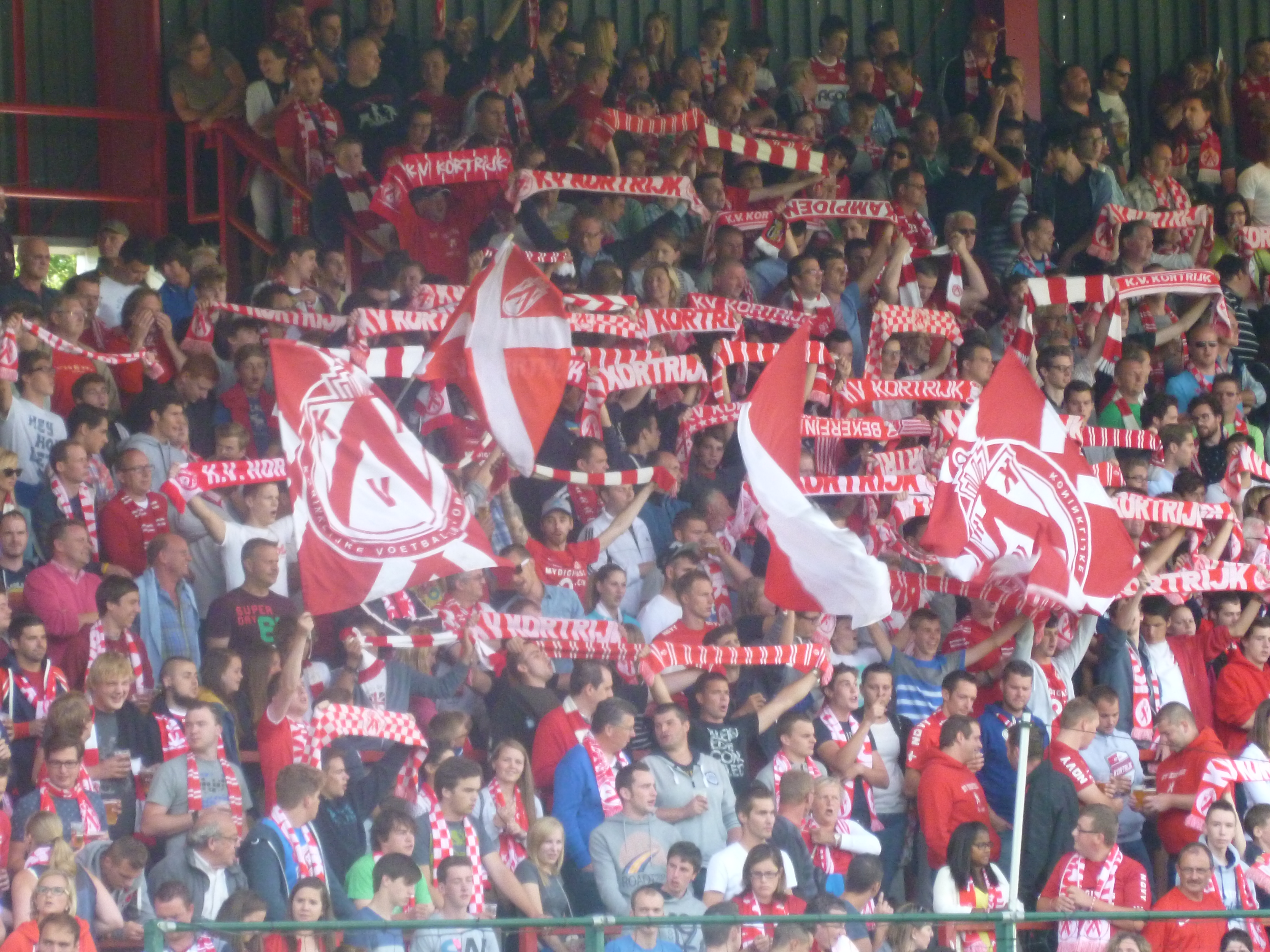 On first impression Kortrijk is quiet, sleepy town, that comes alive about 90 minutes before kick off as supporters decked out in red and white scarves descend on the streets surrounding the Guldensporenstadion. Although only a small ground, tickets were readily available and go on sale 90 minutes before kick off from either of the two small white huts on Mooselsestraat (see photo right). Tickets range from 15-22 euros depending on where you want to sit or stand.