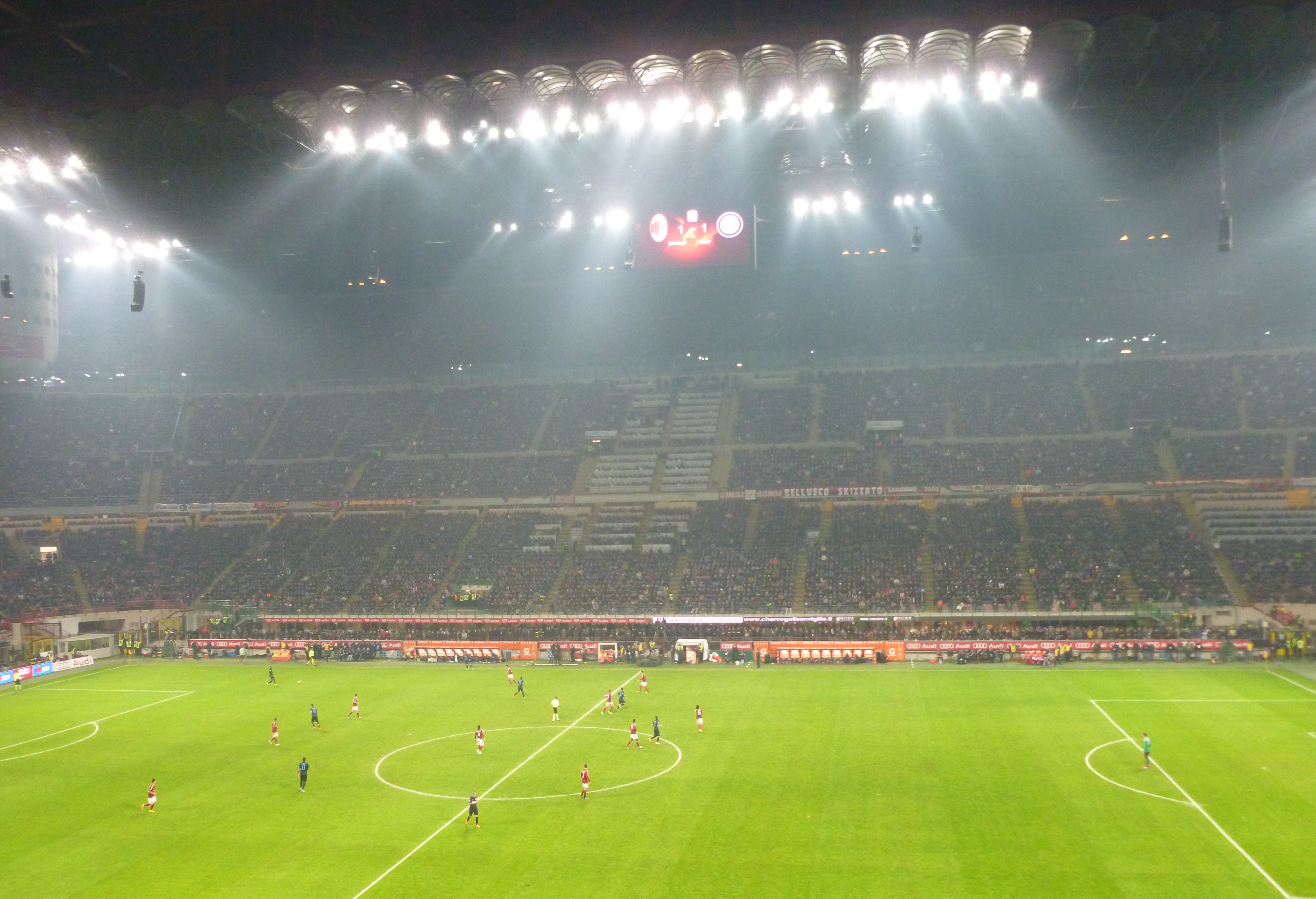 The San Siro really is one of the great footballing arenas, a colosseum of football if you like. It rises up high above the local apartment blocks and leaves you feeling like you’ve arrived at the ‘Mecca’, and that’s just from the outside. Once inside the steep 3 tiered stands that encase the pitch below is a bit of a jaw dropper and leaves you feeling slightly in awe of the place. Chuck in 80,000 fans, a third of them fanatical ultras, a few large flags, some firecrackers and flares, and chants so loud it almost runs through your body like the bass from a loud speaker, and you have yourself the perfect backdrop to a game of football!