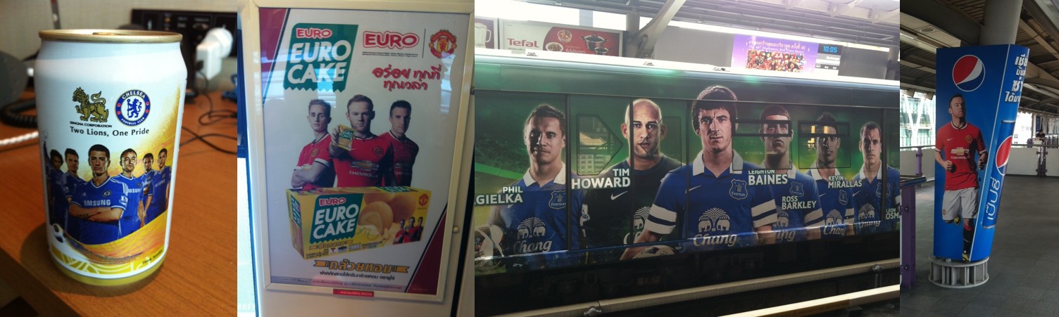 There is more coverage and advertising of the EPL here in Bangkok than in England itself. Whether it’s a sky train covered in Everton players promoting Chang beer; Man Utd players advertising ‘Euro Cake’; public buses decorated with Man City players; a Leicester City club shop at the Central Metro station; Chelsea players on cans of Singha; taxis declaring their ‘loyalty’ with club badge stickers adorning their cars; and fake English club shirts visible on every turn of Bangkok’s cluttered streets. It goes on, but you get the picture. The global brand that is the EPL has well and truly prostituted itself in Bangkok. Maybe it’s just me, but I’d much prefer the uniqueness of an Army Utd shirt or a Buriram Utd training top hanging at a Bangkok market stall than a rail of EPL club kits any day! Anyway I digress!
